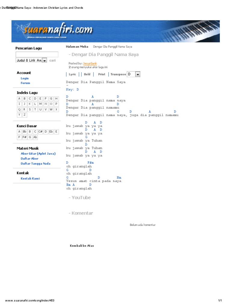 . Verse D A D Dengar Dia panggil nama saya D A D Dengar Dia panggil namamu D G D A D Dengar Dia. Kindly like and share our content. Ku jawab ya Tuhan.